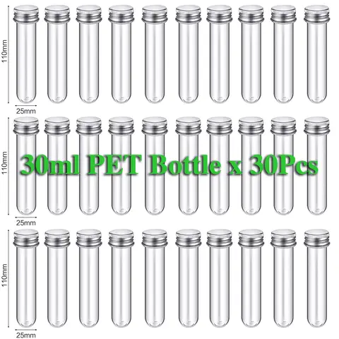 30PCS Lab 30ml PET Test Tube Bottle Transparent Cylindrical Plastic Refillable Bottle For Mask Candy Data Line 25*110mm Bangladesh (New)