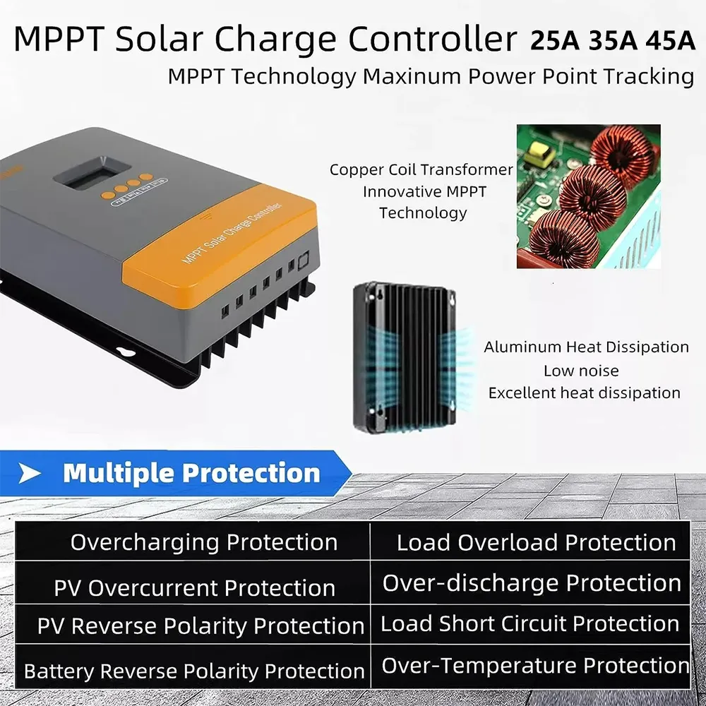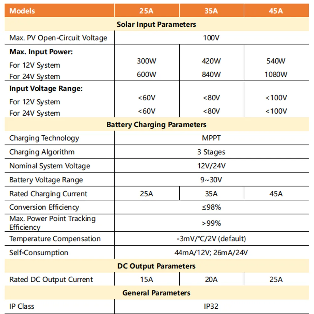 Versatile Charging: Intelligent 25A/35A/45A options with multiple algorithms to support various battery types, including LiFePO4.